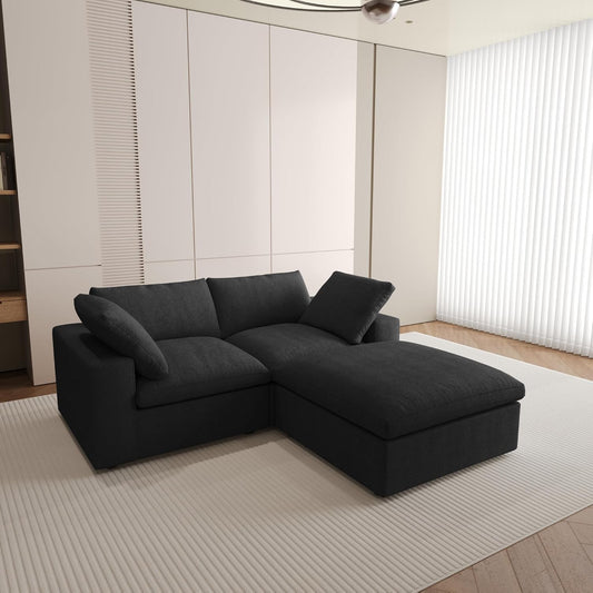 Nuvé® Solace Modular Bouclé Cloud Sofa - Obsidian Black - 3-Seater Sectional Sofa with Ottoman
