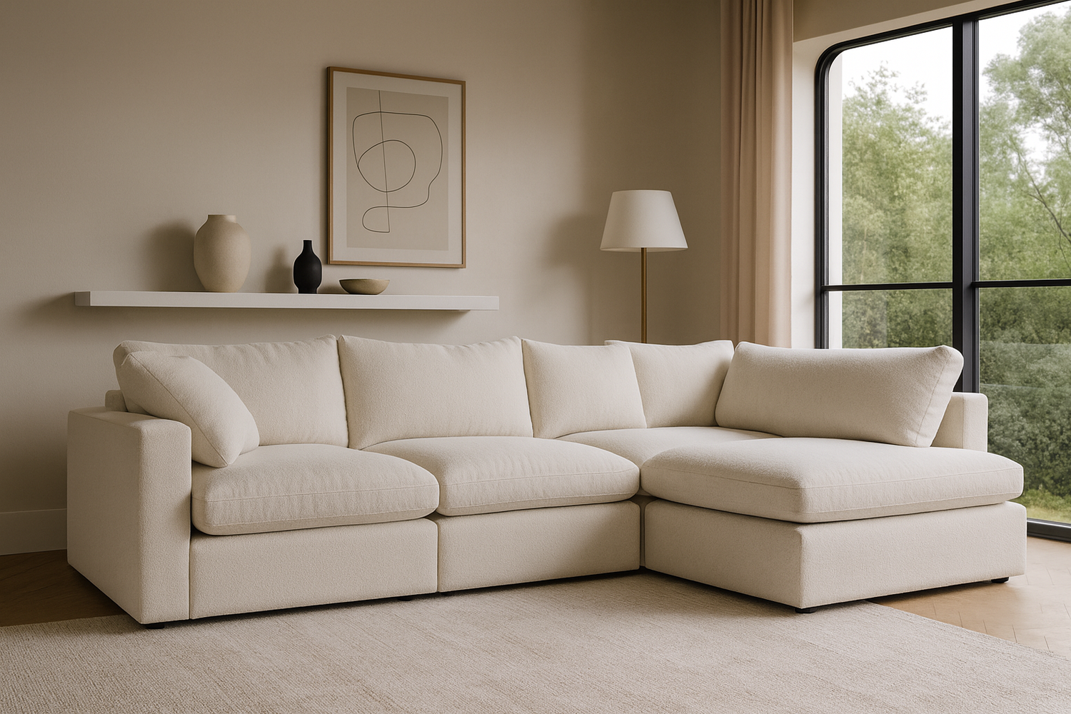 Transform your living space with the Nuvé® Solace Modular Bouclé Cloud Sofa — a modern, Japandi-inspired sectional that balances serene design with cloud-like comfort. Oversized seating, plush down-blend cushions, and a sleek low-profile silhouette make it the perfect centerpiece for calm, contemporary homes. Adaptable layouts and washable, pet-friendly fabrics ensure it’s as practical as it is luxurious.
