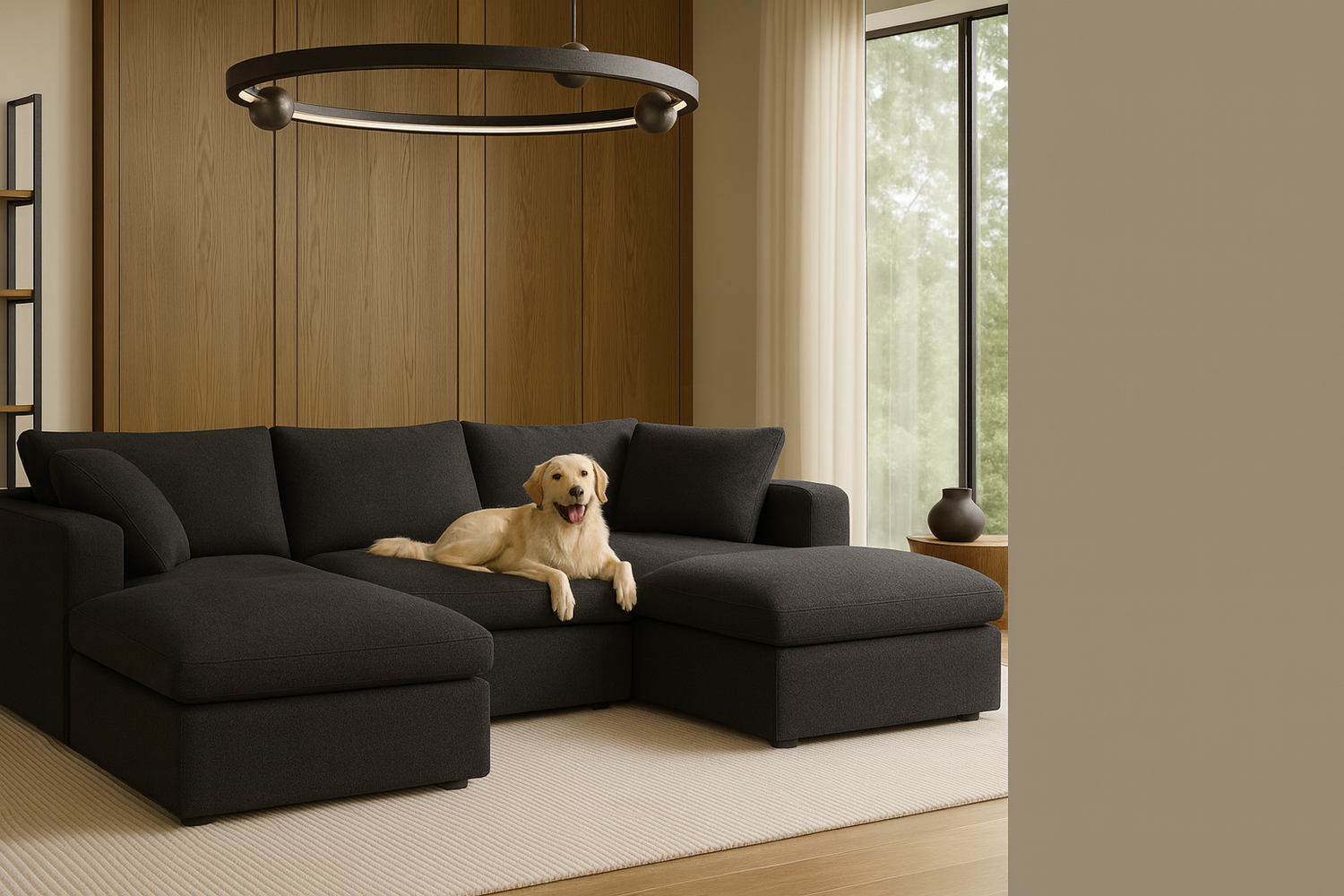 With two toddlers and a golden retriever, I needed furniture that could actually handle our daily chaos. This sofa has been perfect, the cushions are unbelievably soft, the fabric cleans up so easily, and I can rearrange the sections when we host family. It feels like luxury but built for real life.